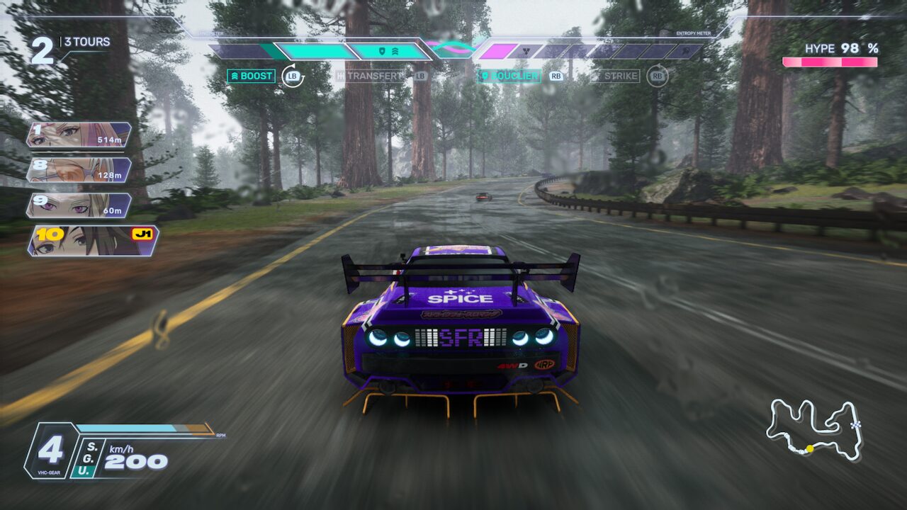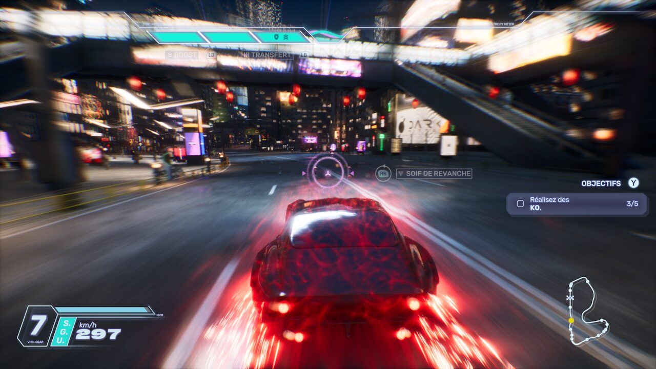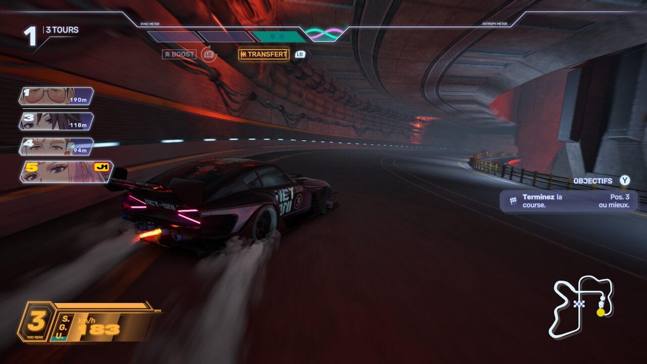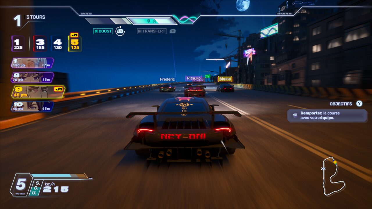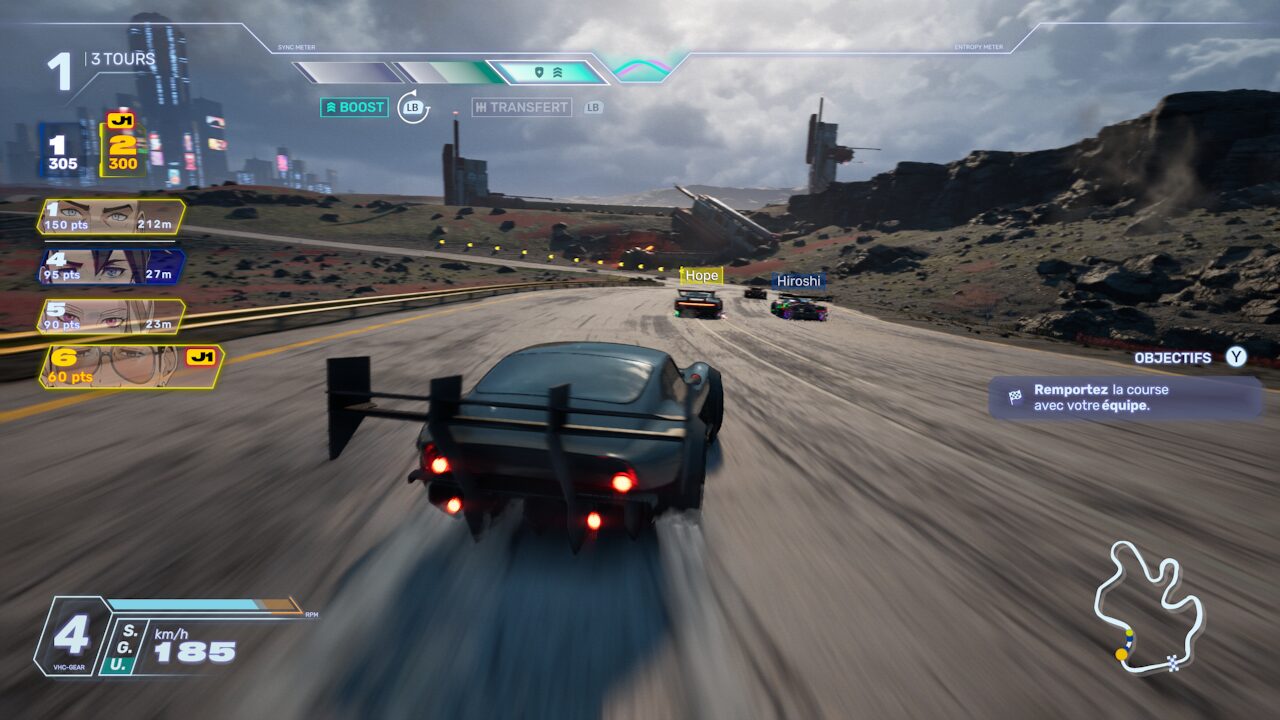 Pour remplir ces jauges de boost, vos actions en course (drift, aspiration, attaques) sont utiles. A vous aussi d’activer le passage de vitesse au moment opportun pour “mettre en banque” un max de boost. C’est un peu le Maillon Faible version course automobile.
