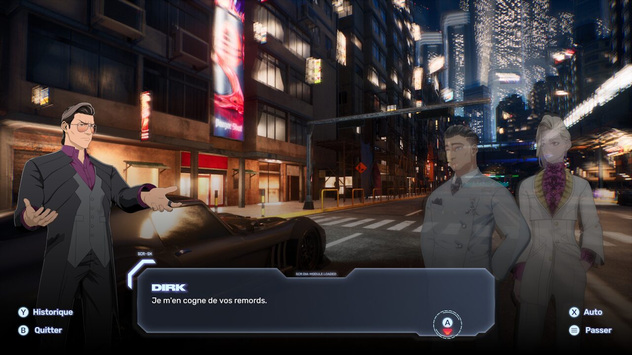 Ce reboot casse les codes et tente de séduire un nouveau public fan d’animes. Dans Screamer 2026, l’histoire se déroule dans une ville futuriste nommée Neo-Rey. Un tournoi de courses illégales et dangereuses y est organisé par un mystérieux “Mr.A”. Dans ce tournoi, on retrouve plusieurs équipes aux motivations différentes. Ainsi s’affrontent les Green Reapers, la Strike Force Romanda, les Jupiter Stormers, les Kagawai Kai et l’Anaconda Corp. Chaque équipe a donc des motivations différentes (pouvoir, gloire, vengeance…) et des personnages originaux, très variés et de nationalités différentes. Le tout est donc mis en scène et présenté façon anime/manga. Certaines de ces personnalités, comme l’exubérante Lavinia, sont de véritables pépites. Mais malheureusement, le jeu souffre d’une mise en scène lourde et peu convaincante.